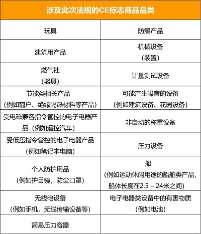 首先要確認(rèn)您在歐盟銷(xiāo)售的商品是否受到該法規(guī)的影響。除醫(yī)療器械、民用爆炸物以及某些升降機(jī)和索道裝置外,所有帶有CE標(biāo)志的商品均適用于該法規(guī)要求。在這里,小編貼心地為各位賣(mài)家整理了一份涉及此次法規(guī)的CE標(biāo)志商品品類(lèi),請(qǐng)大家自行對(duì)照并確認(rèn)所銷(xiāo)售的商品是否在此列表中。